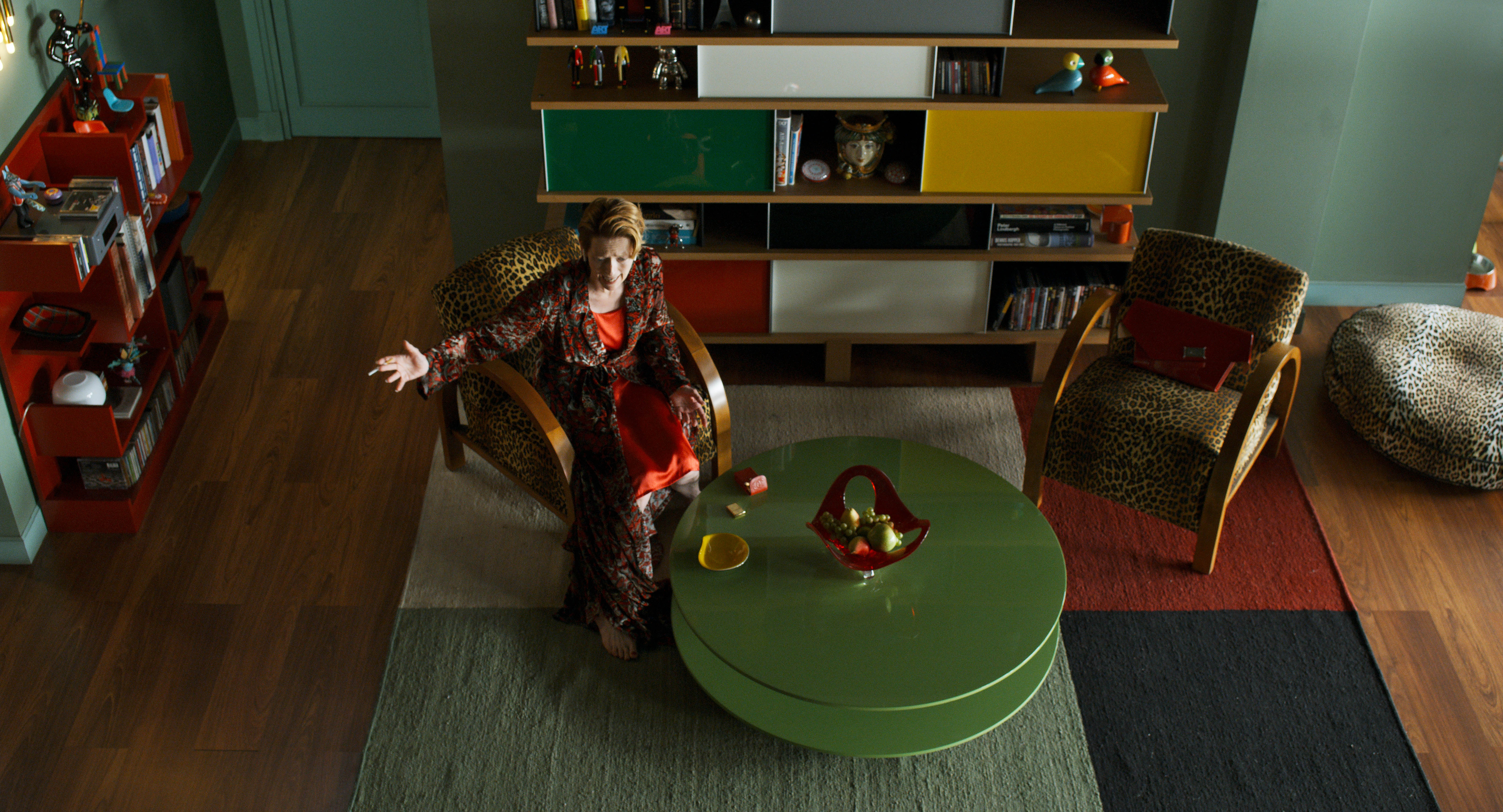 Een eerste opvallende keus is Almodóvars breuk met de vierde muur: actrice Tilda Swinton loopt de loods in waar de set/haar huis is gebouwd. Staat ze op haar balkon, dan ziet ze geen skyline maar de muren van de loods. Zwenkt de camera omhoog, dan zie je als kijker precies hoe het huis is opgebouwd – ingericht in het voor Almodóvar kenmerkende warme kleurenpalet.